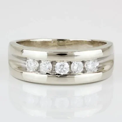 14k White Gold Half Carat Diamond Men’s Wedding Band Anniversary Ring