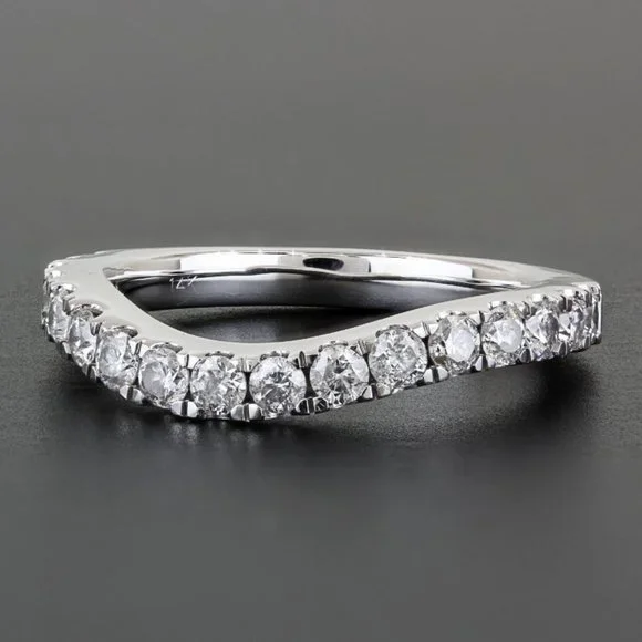 14k White Gold Wavy Diamond Wedding Band Ring by Unique Designs