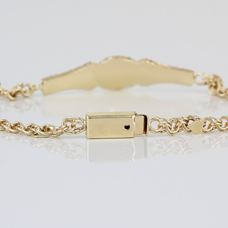 14K Yellow Gold Diamond-Cut 7″ Virgin Mary Rolo Link Hearts Bracelet