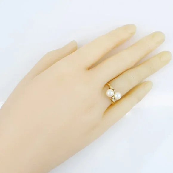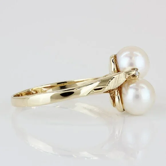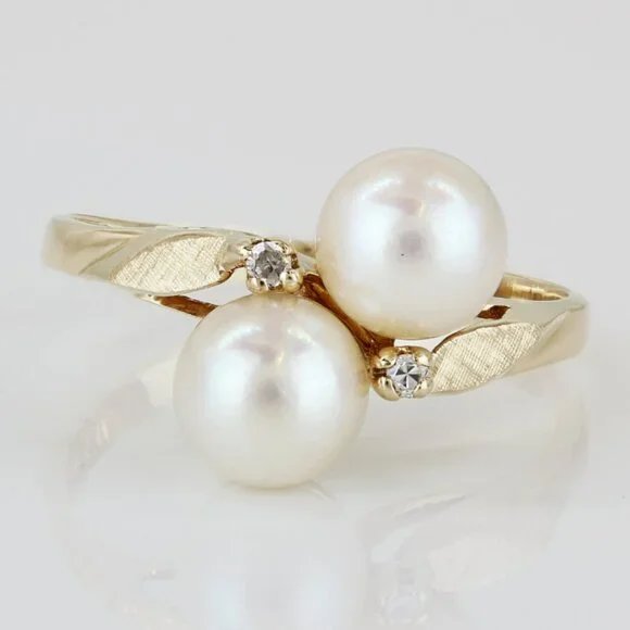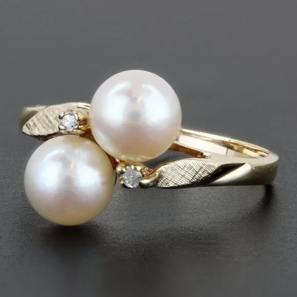 14K Yellow Gold Double Pearl & Diamond Cocktail Ring