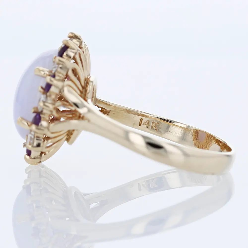 14K Yellow Gold Jade Cabochon Amethyst + Diamond Halo Anniversary Cocktail Ring