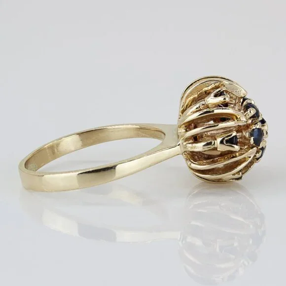 14k Yellow Gold Sapphire Gemstone Flower Dome Cocktail / Anniversary Ring