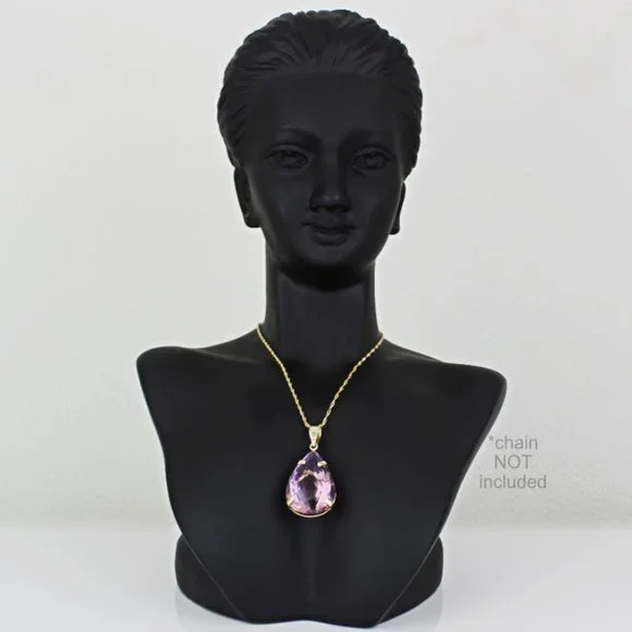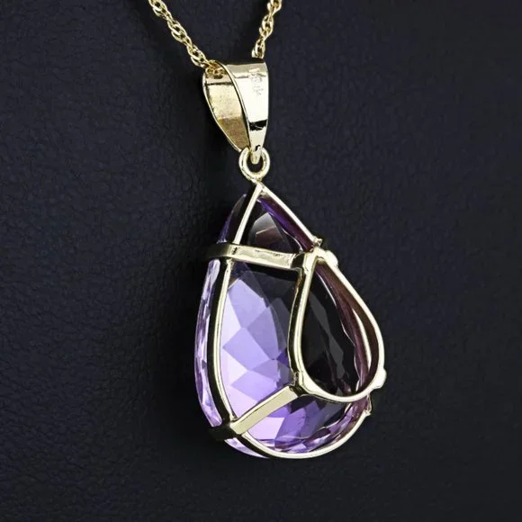 14k Yellow Gold Teardrop Amethyst Statement / Anniversary / Birthstone Pendan