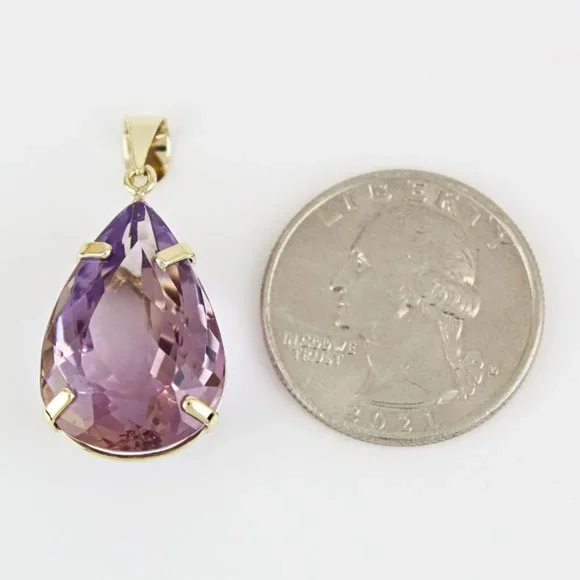 14k Yellow Gold Teardrop Amethyst Statement / Anniversary / Birthstone Pendant