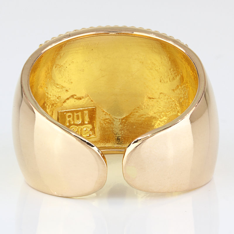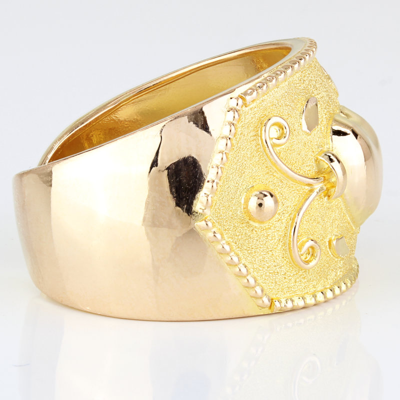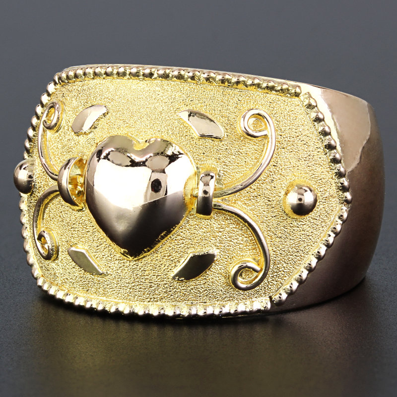 21k Yellow Gold Heart Cuff Cigar Band Ring Band
