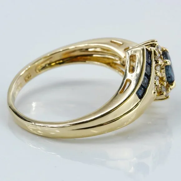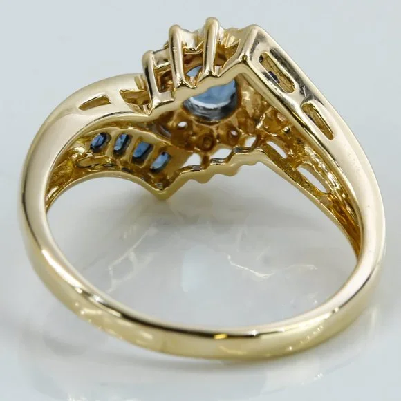 14k Yellow Gold Blue Oval Sapphire and Diamond Anniversary Cocktail Ring