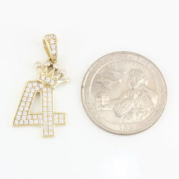 10k Yellow Gold Cubic Zirconia Number 4 Crown Pendant Charm