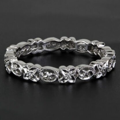 New Jolie 18K White Gold Diamond Milgrain Floral Eternity Ring