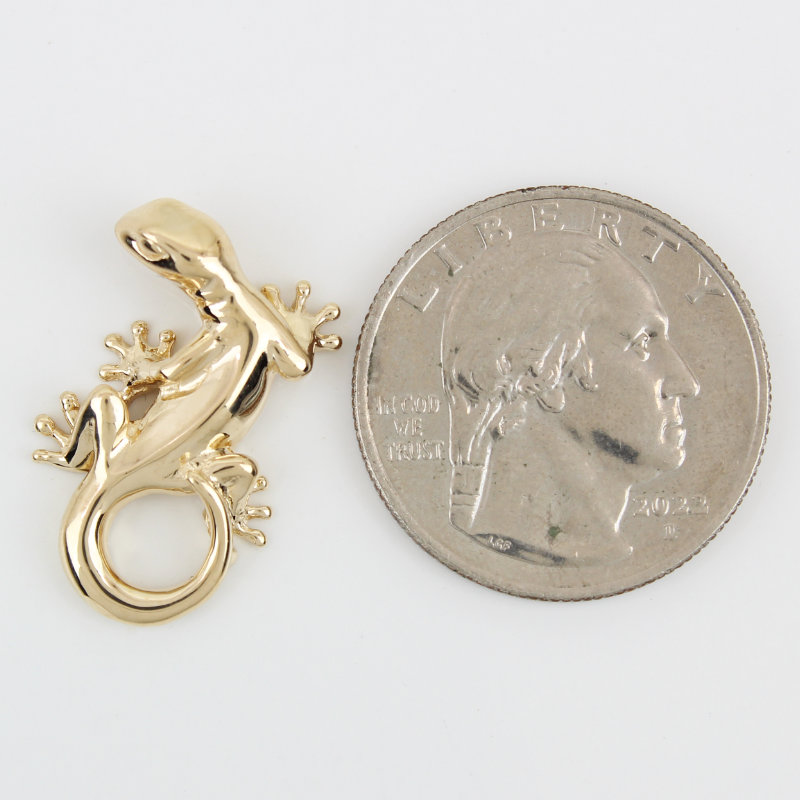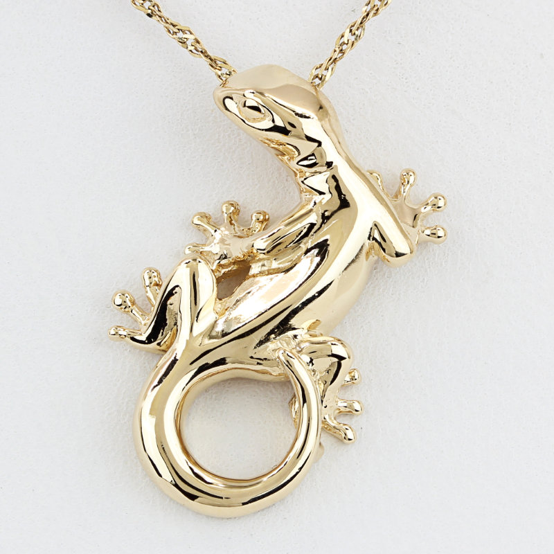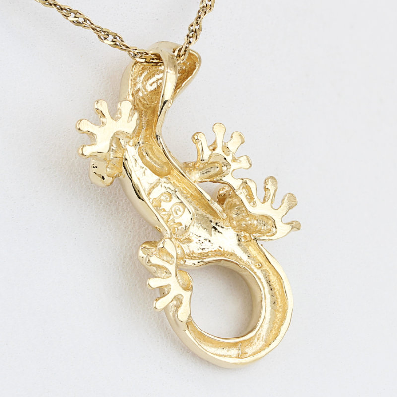 Solid 14k Yellow Gold Gecko Pendant – Lizard Charm Symbol of Luck & Renewal Gift