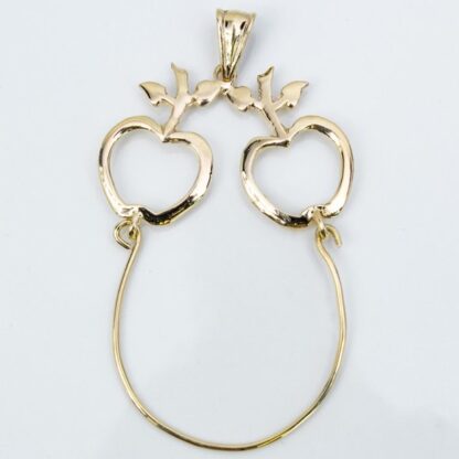 Crafted in solid 10 Karat Yellow Gold, this unique pendant features two beautifully detailed apples connected by a gold wire designed to hold your favorite charms. The wire allows small charms to be easily added or removed, making this piece a versatile foundation for a personalized collection. This pendant is perfect for anyone who loves creativity and self-expression. The apple design symbolizes abundance and vitality, while the charm holder invites you to curate a piece that reflects your personal story. A timeless vintage treasure that blends elegance with playful versatility.