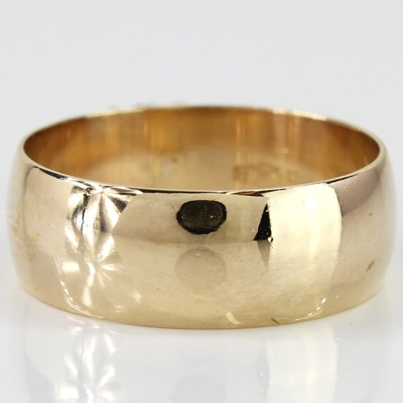 A classic solitaire diamond ring with understated elegance, featuring a reflective gold band with a round miner’s cut solitaire diamond held securely in the center by elevated prongs. The design is simple and straightforward but rich in essence, making for a great gift. “10KT” is stamped onto the ring’s inner band for authenticity.
