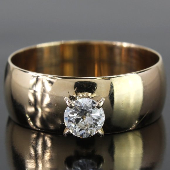 Vintage 10k Yellow Gold Solitaire Mine Cut Diamond Engagement Band Wedding Ring