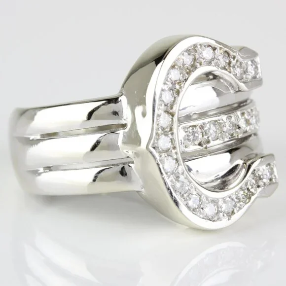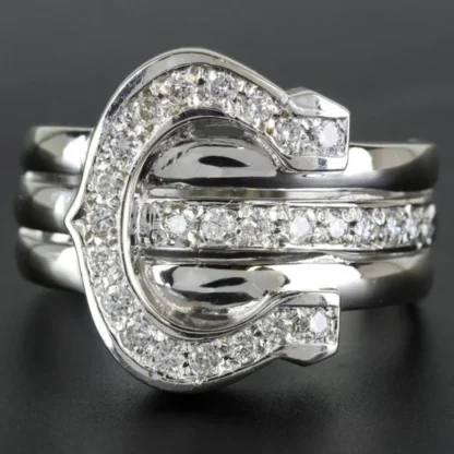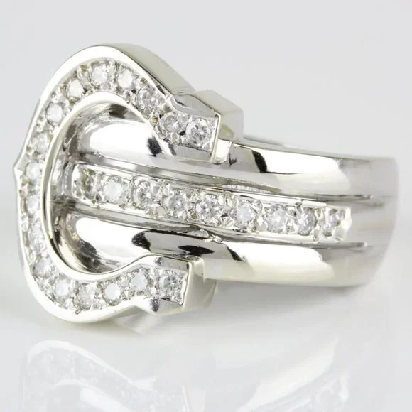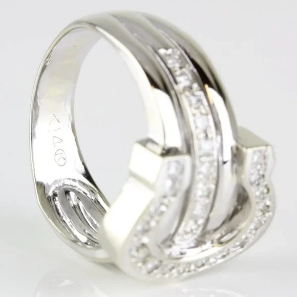 Vintage 14k White Gold Horseshoe Diamond Ring