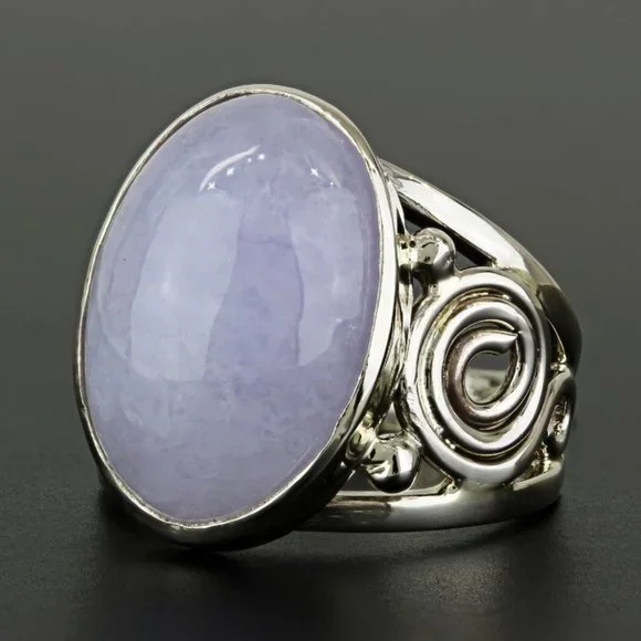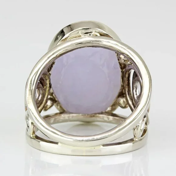 Vintage 14k White Gold Oval Cabochon Lavender Jade Anniversary Scroll Ring