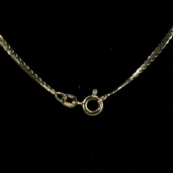This vintage 14 Karat Yellow Gold Necklace is 18 inches in length from end to end. Features a unique “s” link design that is impressive, making this the perfect accessory for any occasion. Held closed by a spring ring clasp. “14KT”, “ITALY” & a “D.C.” maker’s mark is stamped onto sections of the closure.