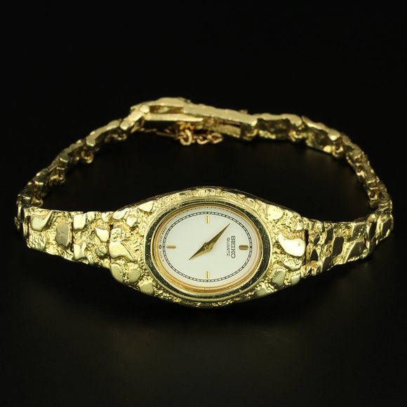 Vintage 14K Yellow Gold Seiko Nugget Style Ladies Bracelet Watch