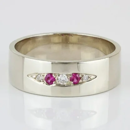 Vintage Men’s 10k White Gold Diamond & Ruby Anniversary Band Wedding Ring