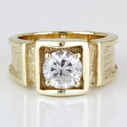 Vintage Men’s 10k Yellow Gold CZ Cubic Zirconia Solitaire Textured Ring