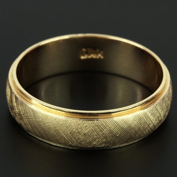 Vintage Men’s 14k Yellow Gold Brushed Wedding Band Ring 6mm -Classic Style